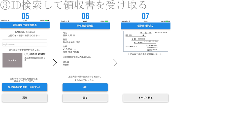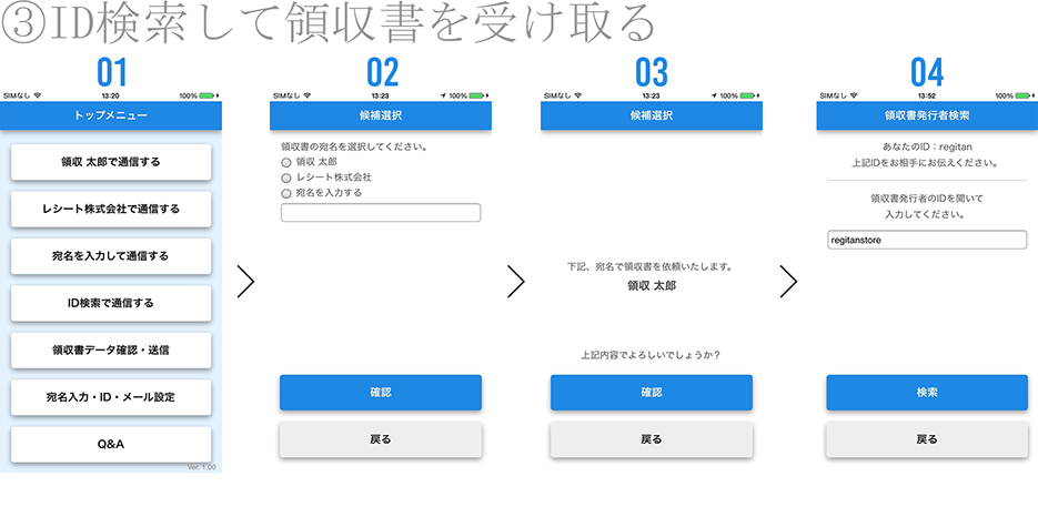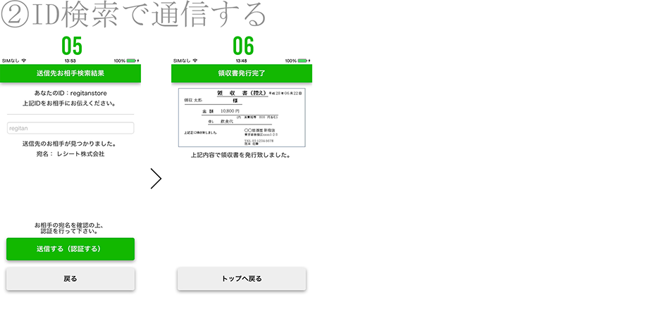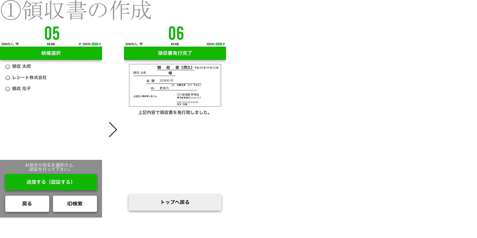 03 領収書の内容を確認し「お相手検索画面へ」のボタ