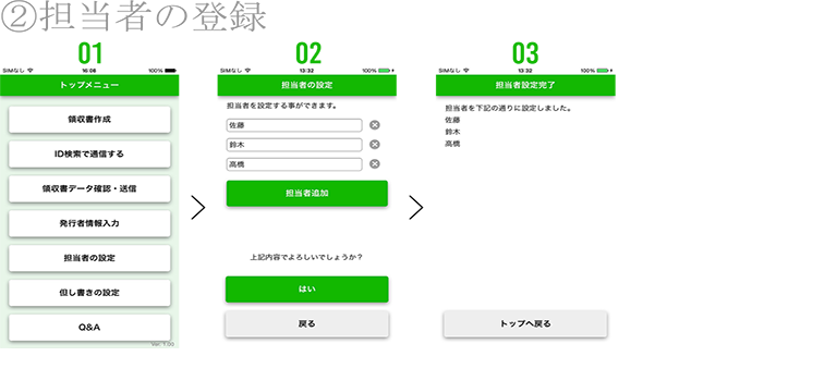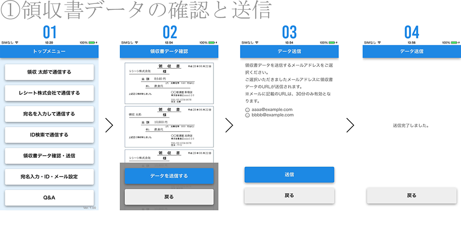 01 トップメニューの「領収書データ確認・送信」をタップ