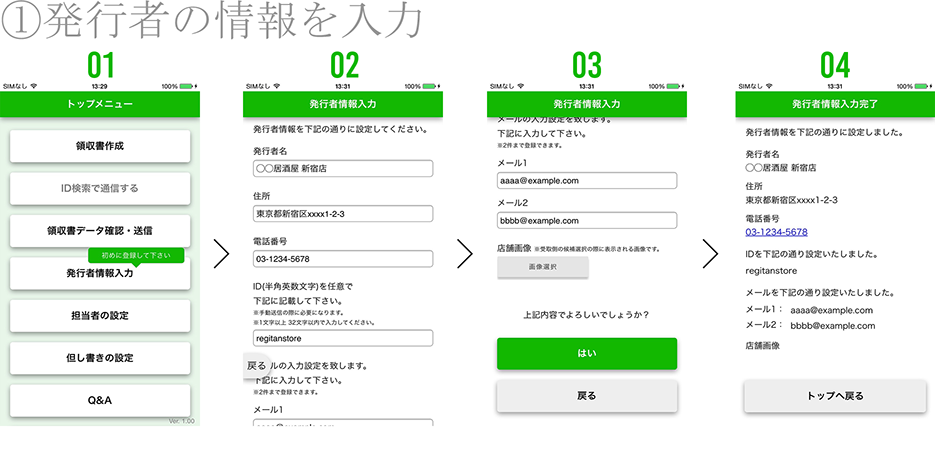 ※メールアドレスの設定は「1. 発行者情報入力」を参照