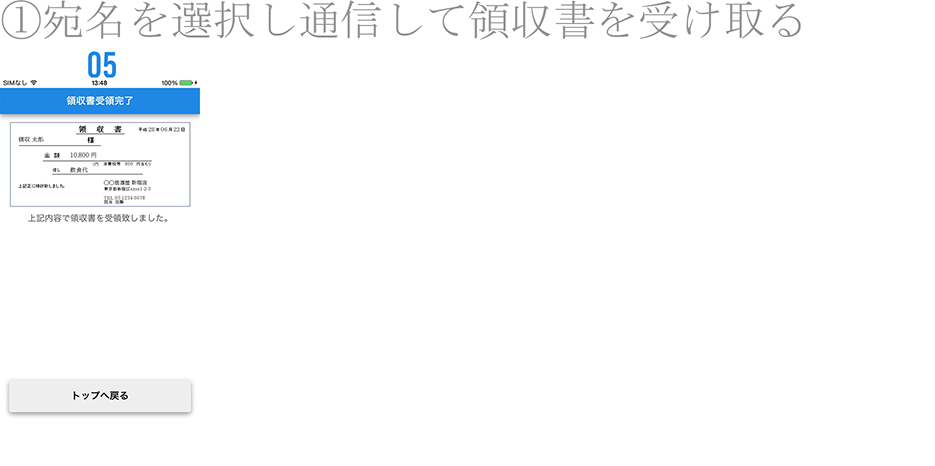 03 領収書の内容を確認し「通信画面へ」のボタンを