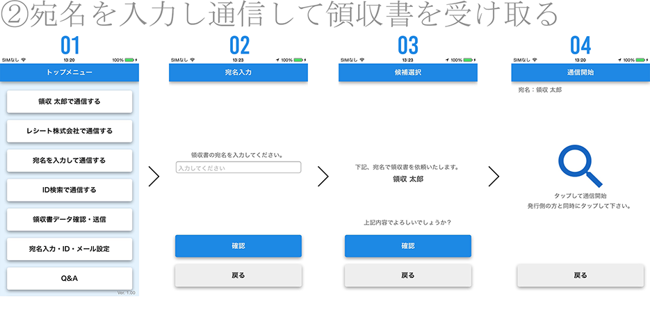 もちろん受取側もあらかじめ設定した宛名を選択して発行側と通信するだけで