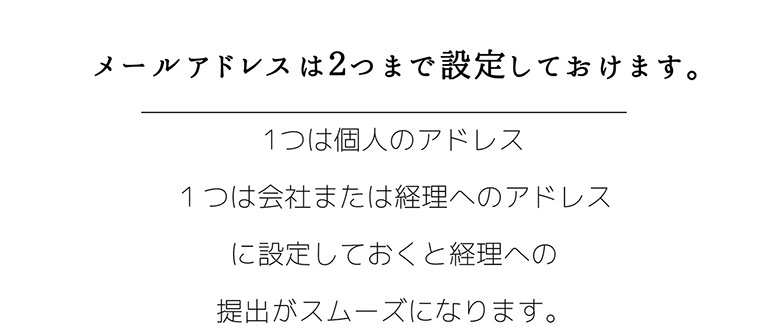 受け取った領収書はアプリ内で確認できます。さらにメールアドレスを設定していただくことで、経理などへ