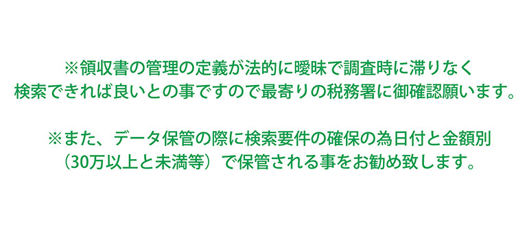 ※また、データ保管の際に検索要件の確保の為日付と金額別(30万以上と未満等)で保管される事をお勧め致します。
