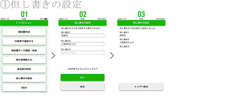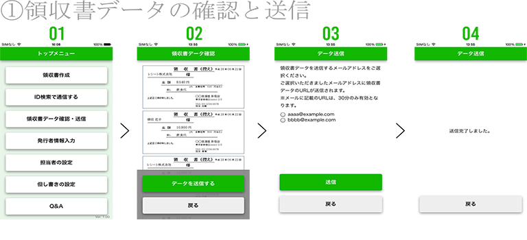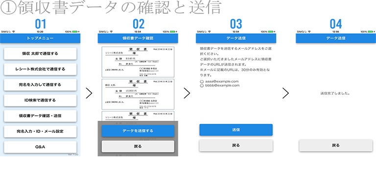 01 トップメニューの「領収書データ確認・送信」をタップ