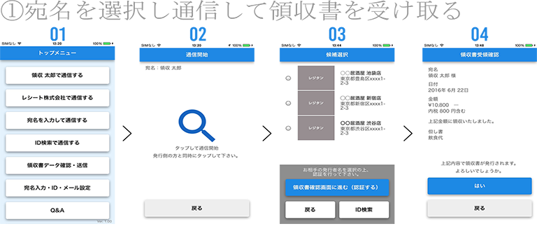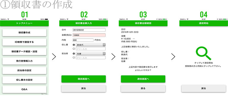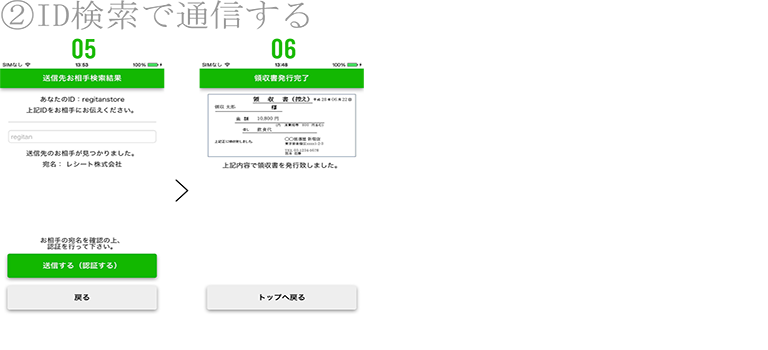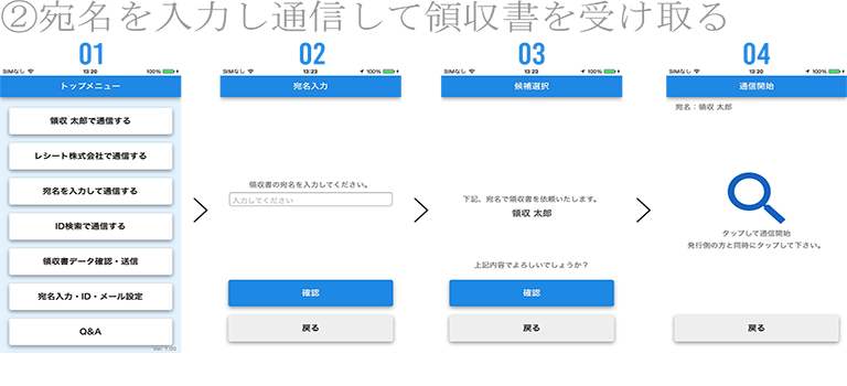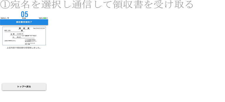 03 領収書の内容を確認し「通信画面へ」のボタンをタップ
