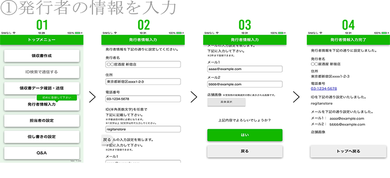 ※メールアドレスの設定は「1. 発行者情報入力」を参照