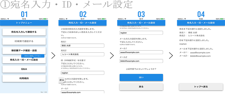 01 トップメニューの宛名入力・ID・メール設定をタップ