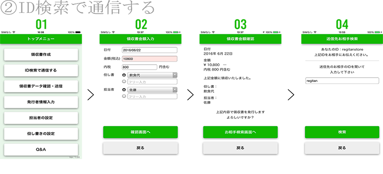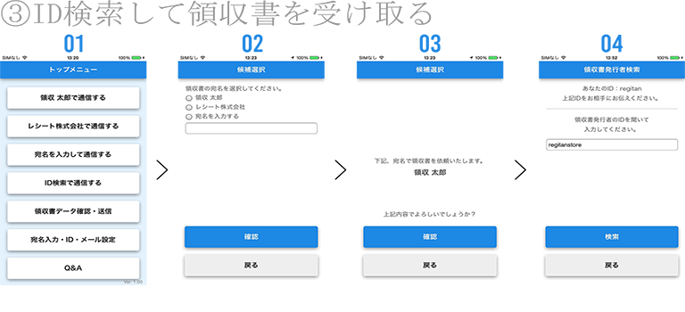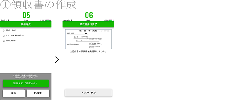 03 領収書の内容を確認し「お相手検索画面へ」のボタンを